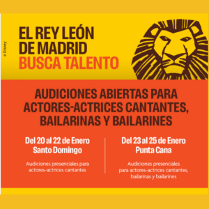 Punta Cana, La Altagracia, RD (NP).- El famoso musical El Rey León, que se presenta en Madrid, ha abierto una convocatoria para actores, actrices, cantantes y bailarines en la República Dominicana.