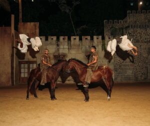 El corazón del parque late en la Arena Panaca, el único escenario estilo Broadway del Caribe, donde se presenta «Travesía World Show». Esta obra teatral y musical ecuestre —única en su clase— reúne a 60 caballos de 12 razas y 40 artistas profesionales, incluyendo acróbatas y jinetes, en una puesta en escena que emociona a todas las edades.