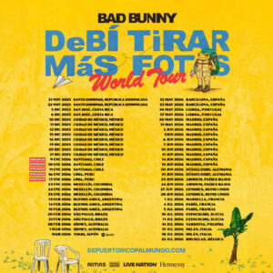 La gira mundial de 56 fechas, está completamente agotada y continúa con la racha histórica de Bad Bunny, con más de 10 millones de fans entrando en las filas de venta en línea en todo el mundo y más de 2.6 millones de boletos vendidos para sus shows en estadios a lo largo de 18 países y cuatro continentes.